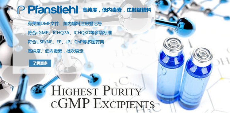 “熱烈祝賀Pfanstiehl的注射級甘氨酸Glycine(G-140)喜獲CDE登記號F20250000403, 這是Pfanstiehl產品獲得的第18個CDE登記號!”甘氨酸在醫藥輔料制劑中應用廣泛,, 可作為緩沖劑,增溶劑,穩定劑等,具有諸多優勢。Pfanstiehl秉承一貫高品質理念,為滿足全球生物制藥行業對于高品質甘氨酸的需求,隆重推出的注射級甘氨酸Glycine (G-140), 具有超高純度,超低內毒素,超低金屬殘留的特點,單獨檢測29種金屬離子,并且新增DNA,RNA,DNA酶,RNA酶和脂肪酶,亞硝酸鹽等多項質量指標的檢測,符合多國藥典規定(USP, EP, BP, JPE, ChP),可用于生物治療性藥物和疫苗的生產。產品信息:· 產品名稱:Glycine, High Purity, Low Endotoxin, Low Metals, USP, EP, BP, JPE, ChP (G-140)· 中文名稱:甘氨酸· 分子式:C2H5NO2· 分子量:75.07 g / mol· CAS號:56-40-6· 產品貨號:G-140產品特點: · 超高純度,超低內毒素,超低微生物含量,超低金屬雜質殘留· 質量指標新增DNA,RNA,DNA酶,RNA酶,脂肪酶和亞硝酸鹽檢測· 符合多國藥典:USP, EP, BP, JPE, ChP· 符合ICH Q3D標準· 符合GMP標準· 已獲DMF和CDE登記號 產品應用:· 緩沖劑· 穩定劑· 增溶劑如果您對Pfanstiehl注射級別Glycine G-140感興趣,歡迎聯系Pfanstiehl 中國區代理商北京西美杰科技有限公司獲得如下詳細的產品概況說明文件和測試樣品。Pfanstiehl Inc.最新產品系列如下,歡迎聯系北京西美杰科技有限公司獲取100g裝免費樣品。北京西美杰科技有限公司為Pfanstiehl中國代理,為客戶提供完善的技術支持與售后服務。歡迎撥打西美杰客服電話400-050-4006或者登陸網站www_xmjsci_com.yhooshop.com了解更多信息。 更多>